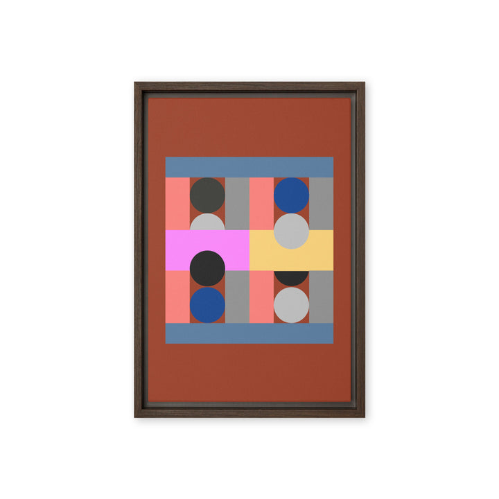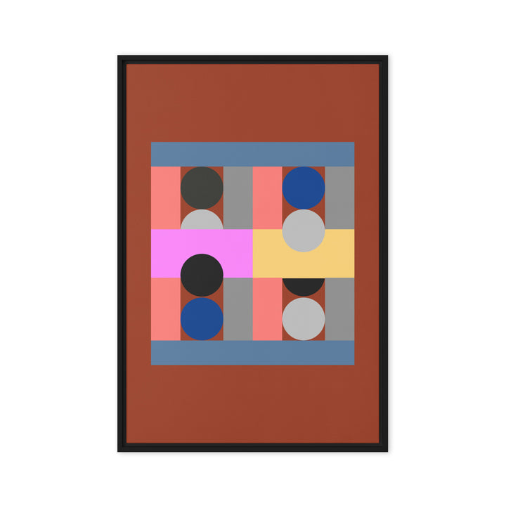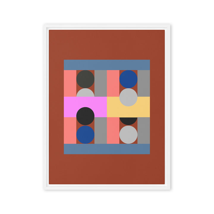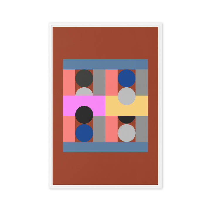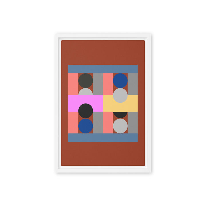 - The framed canvases with brown and black frames have a black inside around the canvas, and the canvases with white frames have a white inside around the canvas.